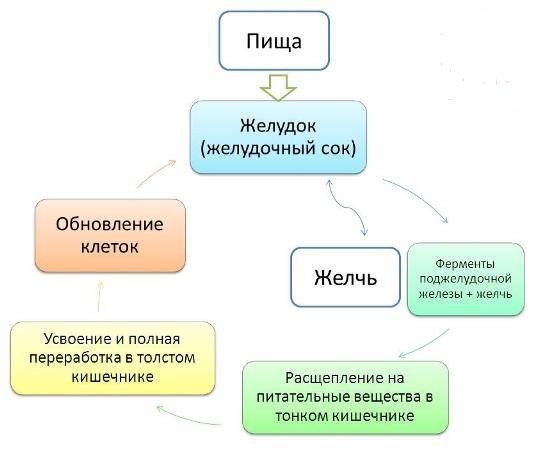 Пищеварительные процессы являются довольно сложными и включают в себя расщепление питательных веществ в желудочно-кишечном тракте, их последующее всасывание в лимфу и кровь, затем они вовлекаются в процессы обмена и образуют пластические материалы. Последние необходимы построения организма и синтеза энергии, которая нужна для его нормальной работы.