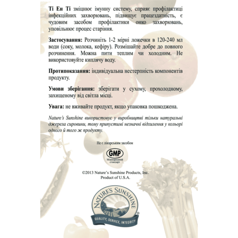 Компания NSP предлагает своему клиенту отличную питательную добавку на питьевой основе – это TNT(Total Nutrition Today) - Все необходимое на каждый день. Он обогащен теми микроэлементами, которые так необходимы организму как взрослого, так и ребенка, а именно – пищевыми волокнами, минералами и витаминами. А главное – имеет приятный вкус, напоминающий фруктовый сок. Витамины – это та часть пищевого рациона, которая просто обязана поступать в организм. Они участвуют в жизнедеятельности человека, не только активируя и стимулируя сопротивление организма болезням и воздействию окружающей среды, повышают жизненный тонус и многое другое. А вот основной задачей минералов является поддержание построения тканей, а также обеспечение стабильности внутренней среды организма (кислотно-щелочного баланса, водно-солевого обмена). Чтобы поддерживать нормальную работу желудочно-кишечного тракта, организму достаточно важны пищевые волокна.Многие клинические исследования подтвердили тот факт, что постоянное употребление пищевых волокон снижает процент заболевания раком толстой кишки.Антиоксиданты, известные тем, что их содержание в организме замедляет процесс старения, также присутствуют в составе напитка. Они представлены в напитке TNT(Total Nutrition Today) - Все необходимое на каждый день концентратами томатов, моркови и брокколи.