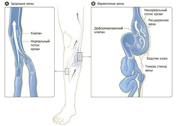 În aceste cazuri, se produce o întindere periculoasă a peretelui vaselor, care determină concentrarea sângelui în zonele cele mai slabe și mai vulnerabile. Pe măsură ce sângele se acumulează, acesta întinde peretele vasului până la o stare "nodulară", ceea ce duce la apariția varicelor. În plus, unele persoane au diverse defecte congenitale. De exemplu, pereți vasali insuficient de elastici sau închiderea insuficientă a valvelor care sunt situate în toate direcțiile venei.