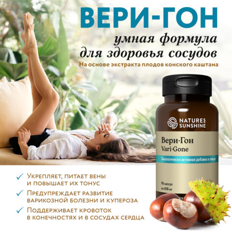 Vari-Gone (Vari-Gone) este un complex biologic activ care îmbunătățește vizibil starea căilor sanguine (în special a venelor), reducând congestia picioarelor. Utilizarea regulată a acestui produs ajută la îmbunătățirea fluxului sanguin în zona plexului hemoroidal.