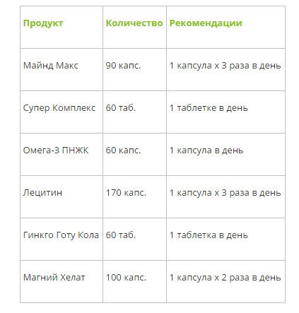 Produsele complexului în ansamblu ajută la îmbunătățirea performanțelor creierului.