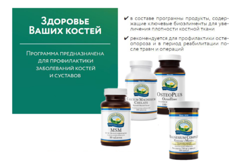 Aveți o viață lungă și sănătoasă cu un complex "Sănătatea oaselor tale". dorește compania NSP!